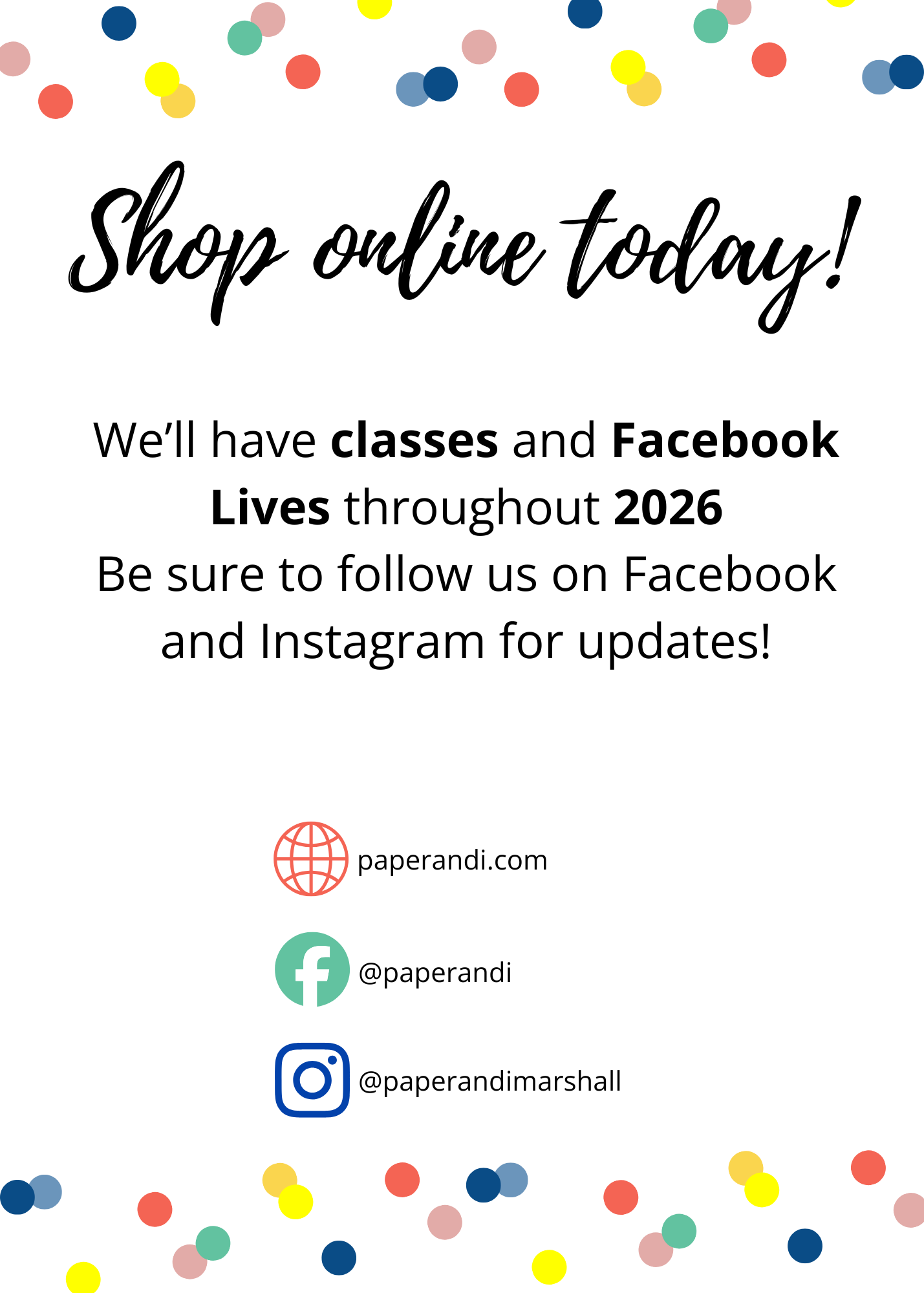Our brick-and-mortar location closed permanently on December 23, 2025, BUT we’re still open online at paperandi.com.